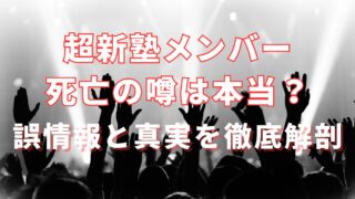 芸人 超新塾メンバー死亡説の真相は?元メンバーの現在・最新情報まとめ 超新塾メンバー死亡説の真相を解説。噂の背景や誤解された人物、元メンバーの現在、現役メンバーの活動状況まで詳しくまとめ、なぜ死亡説が広がったのかを整理しています。 2025.09.17 芸人